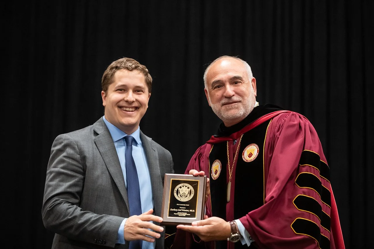 Dr. Wooten receiving the Ph.D. Leadership Departmental Award from Alvernia University President John R. Loyack